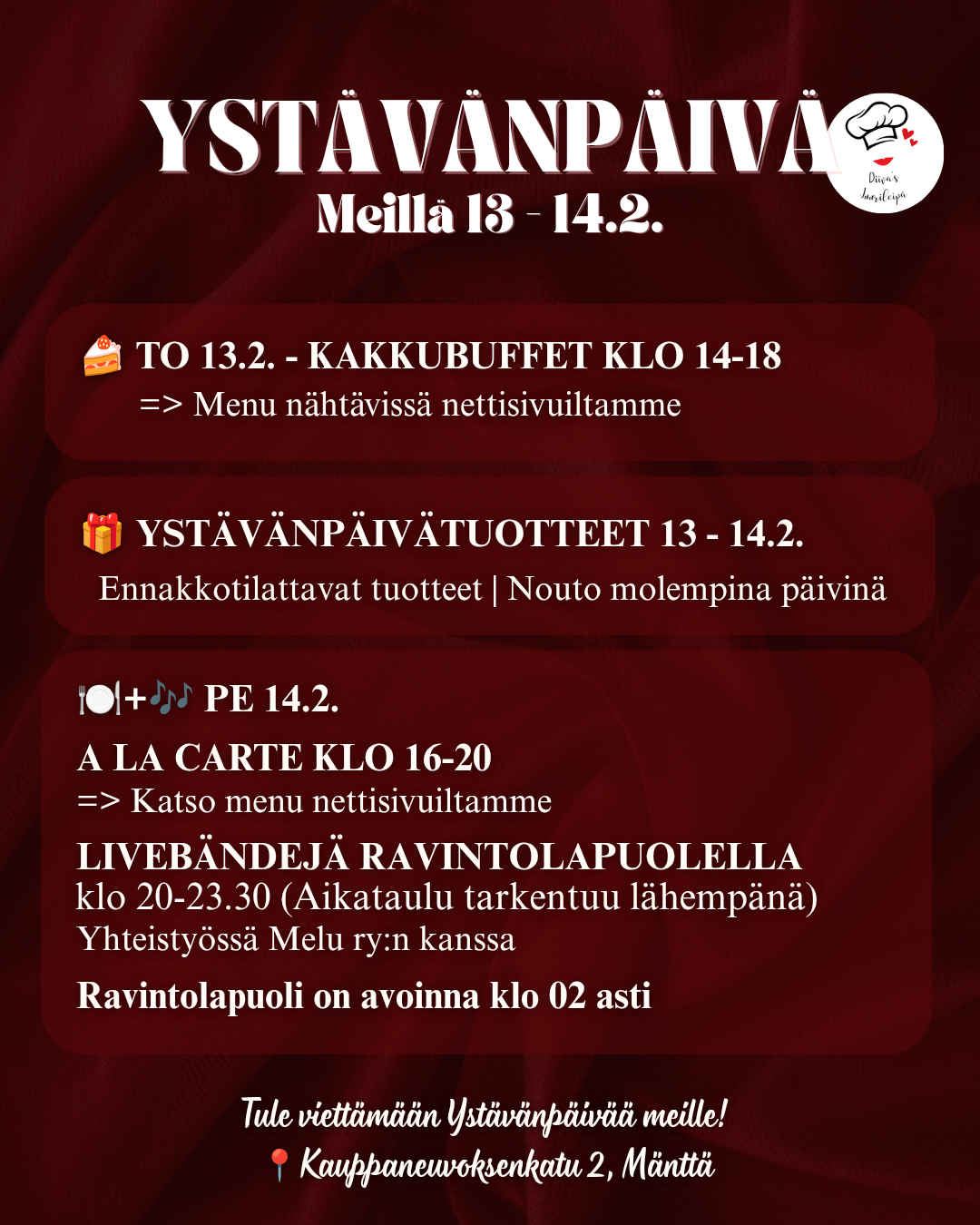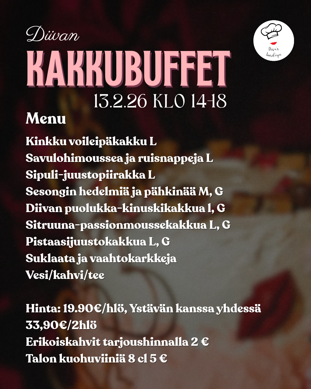 Tule herkuttelemaan yksin tai yhdessä meidän kakkubuffettiin: