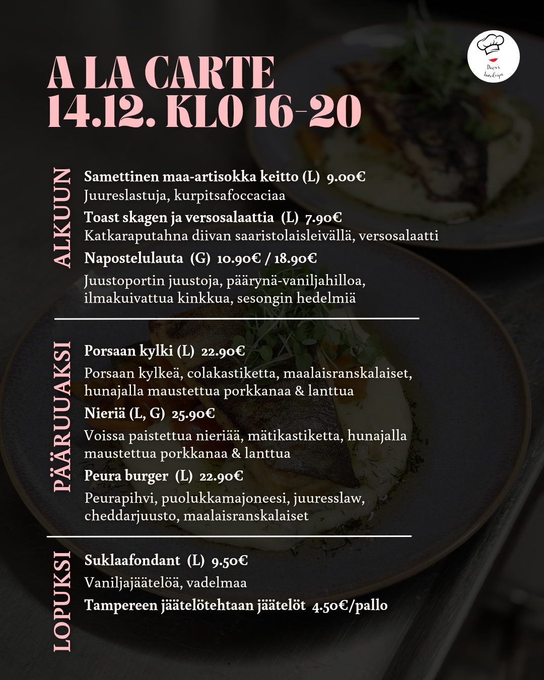 Ystävänpäivän illaksi rakkaudella itse tehtyä ruokaa meidän a la cartessa: